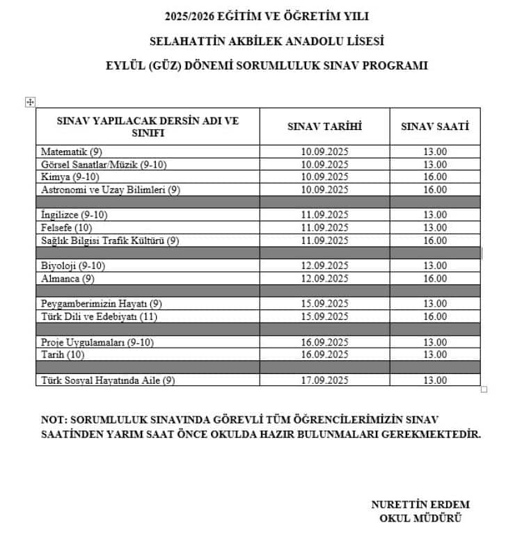 Sorumluluk sınavlarına girecek öğrenci listesi için tıklayınız.