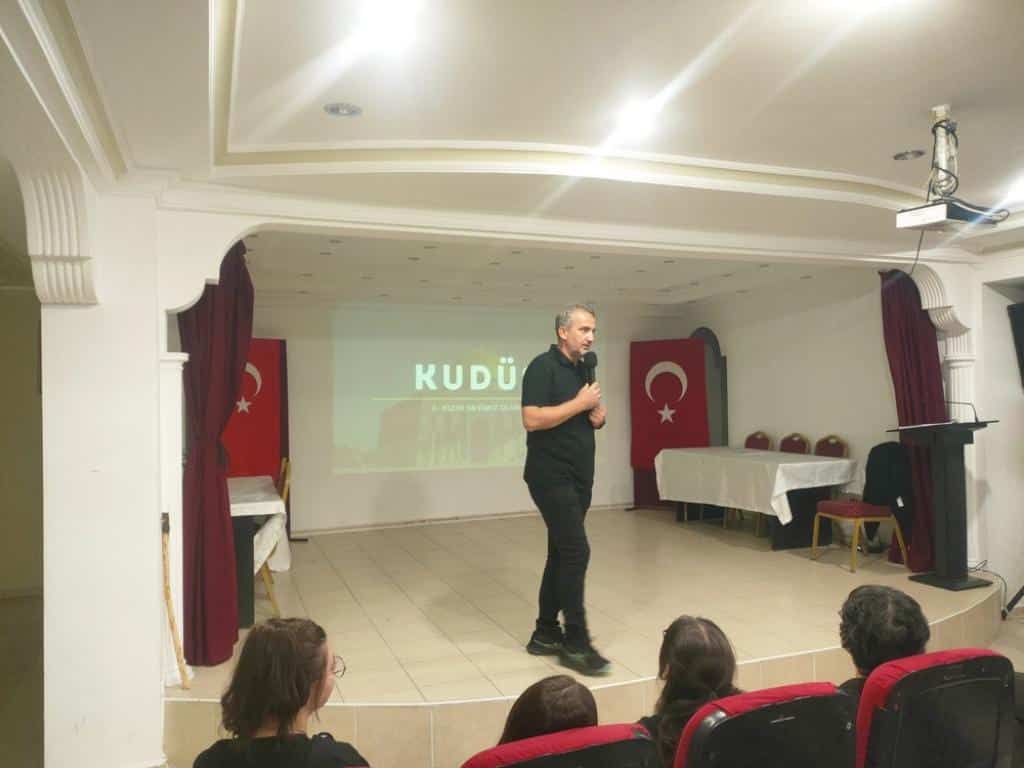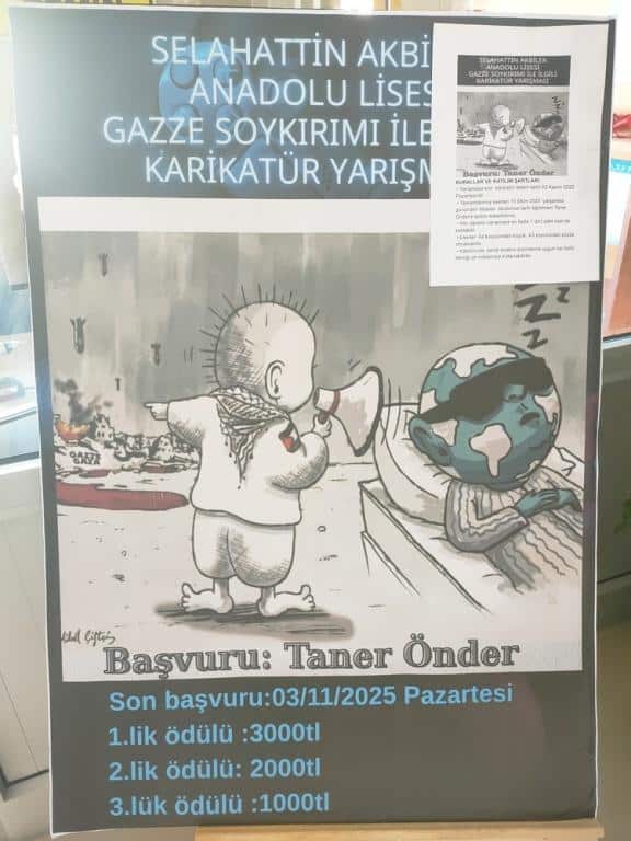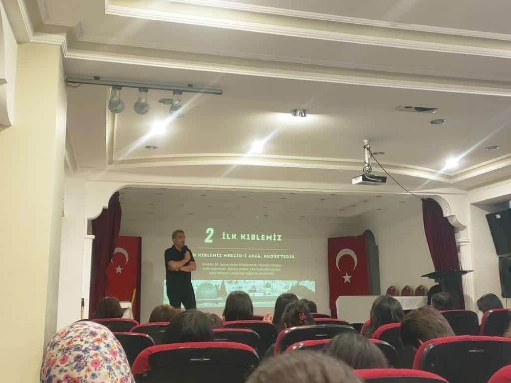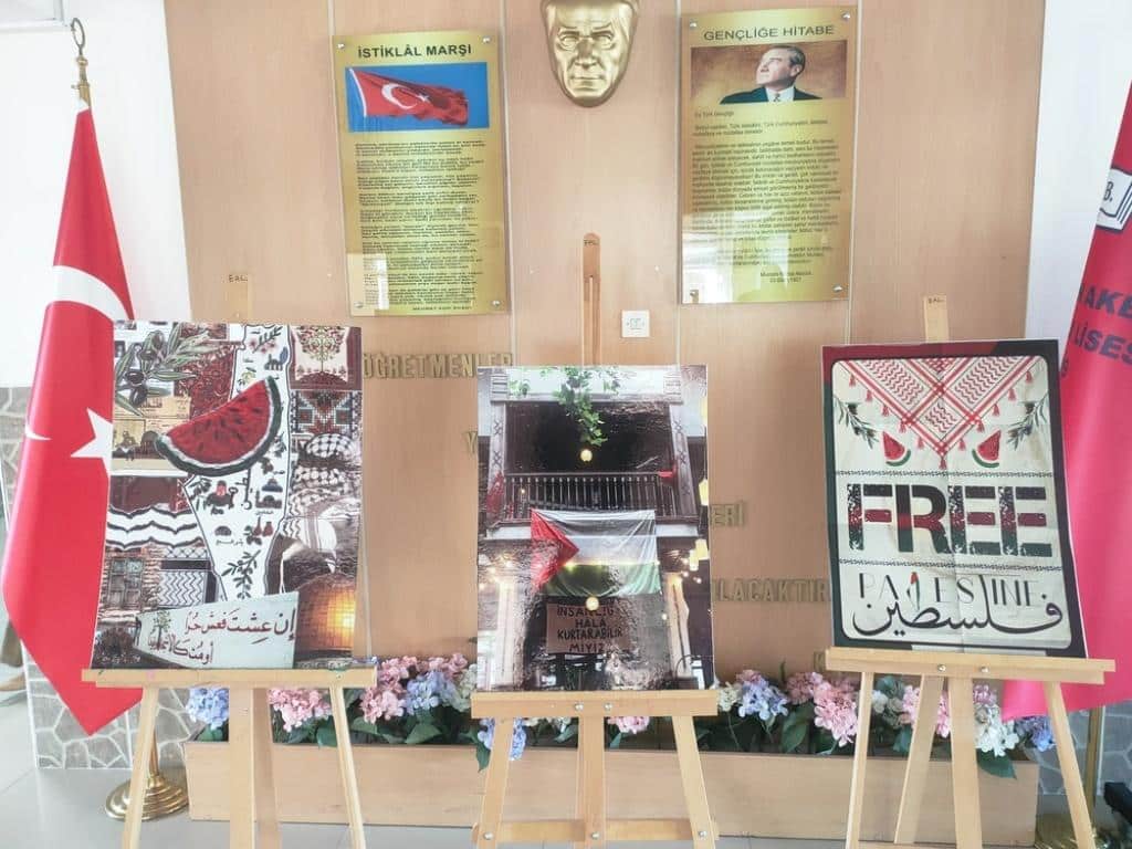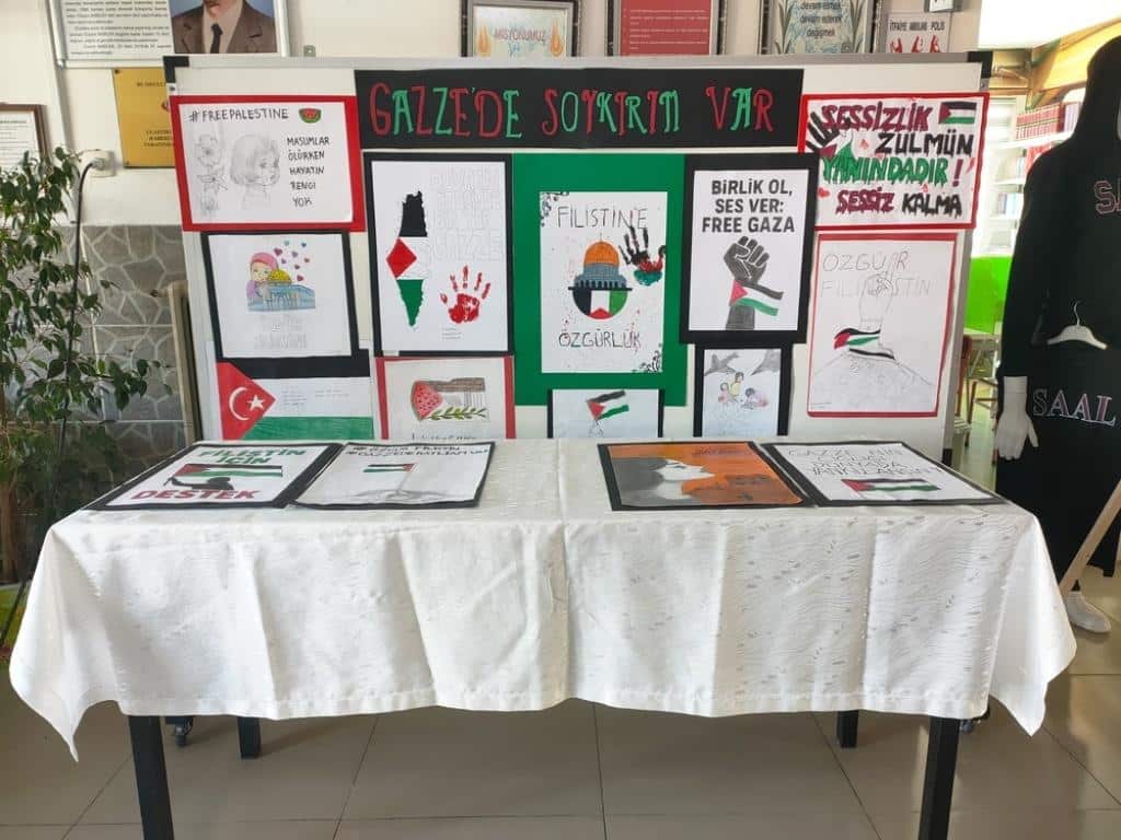 Bakanlığımızın ilgi yazısı doğrultusunda 7 Ekim Salı sabahı ülkemizdeki tüm okullarda eş zamanlı olarak Türkiye Yüzyılı Maarif Modeli "Erdem-Değer-Eylem" yaklaşımı esas alınarak gençlerimize Filistin'de yaşanan insan hakları ihlallerinin sona erdirilmesine yönelik olarak Filistin farkındalık etkinlikleri düzenlenmiştir.